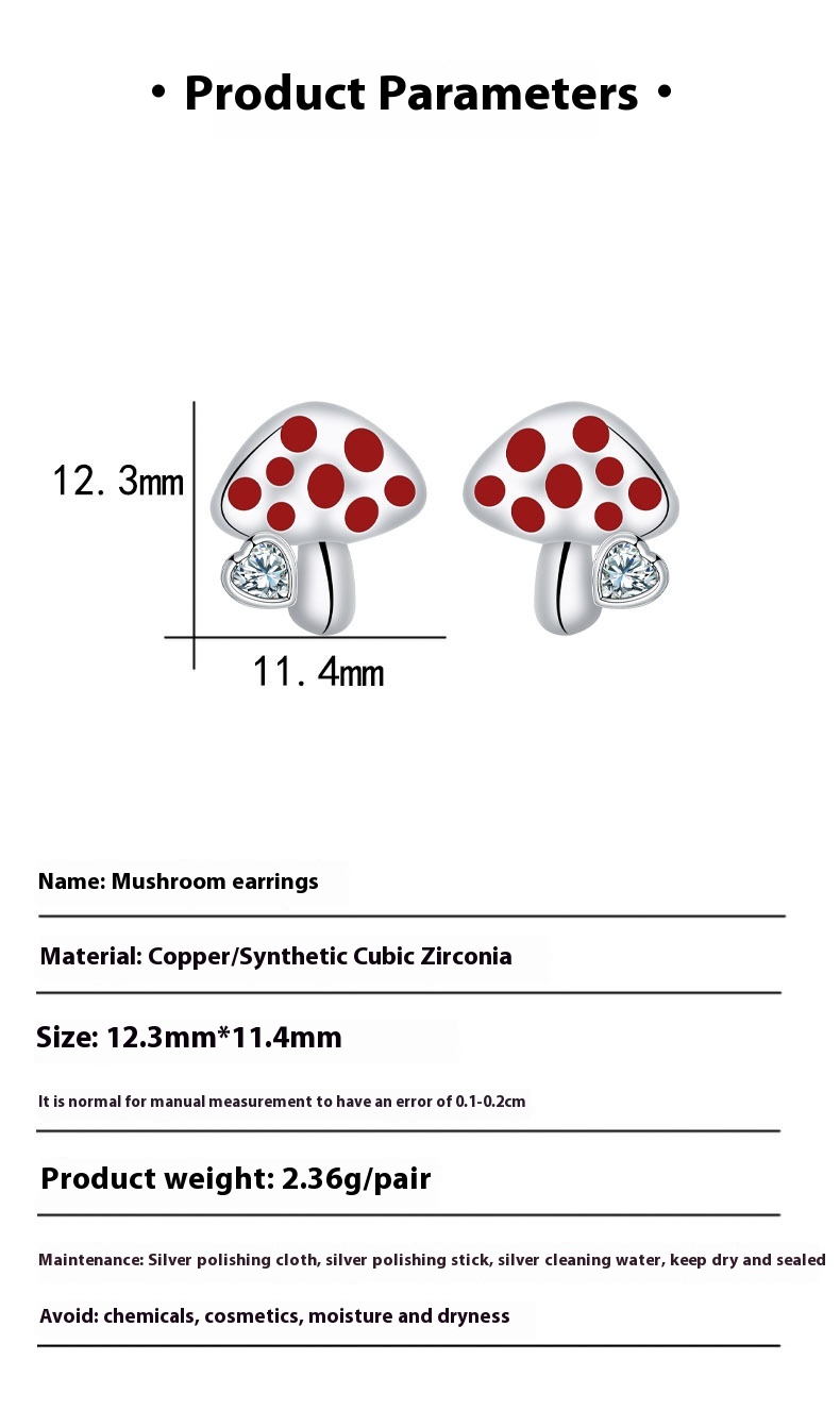 High-grade Mushroom Stud Earrings Elegant Style Personalized Design