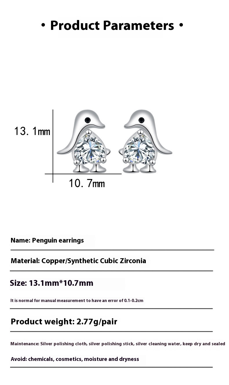 Penguin Stud Earrings Light Luxury Minority High-grade