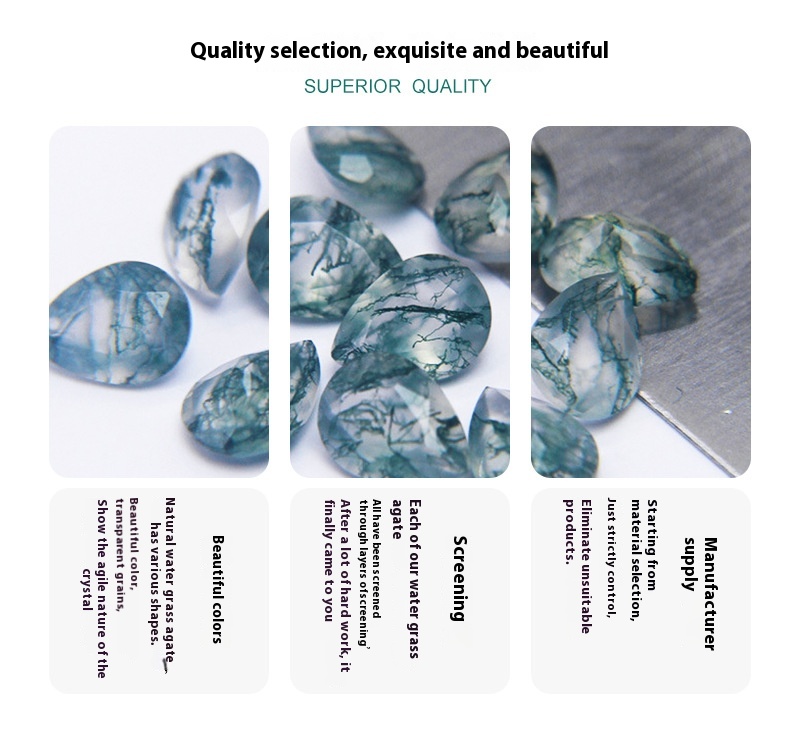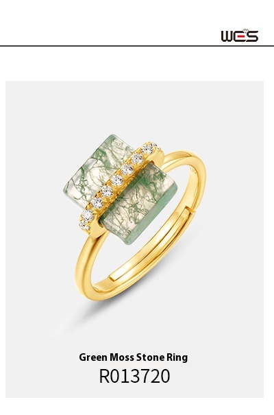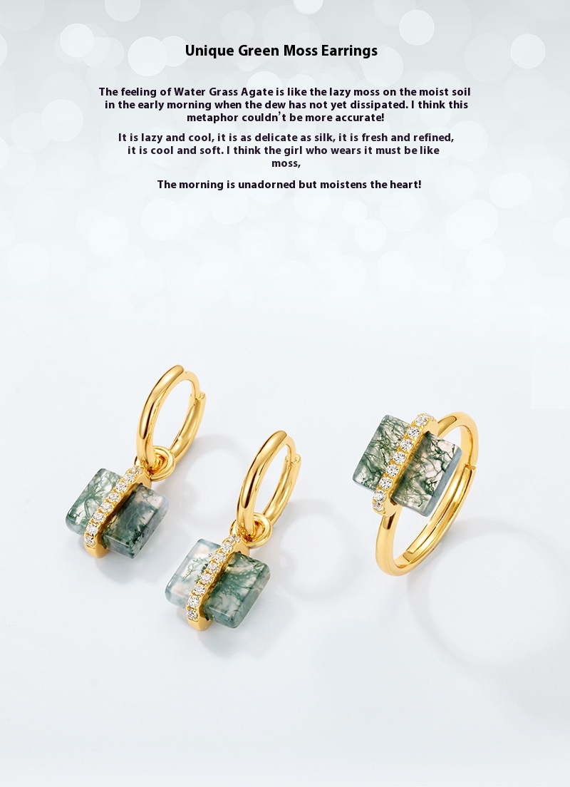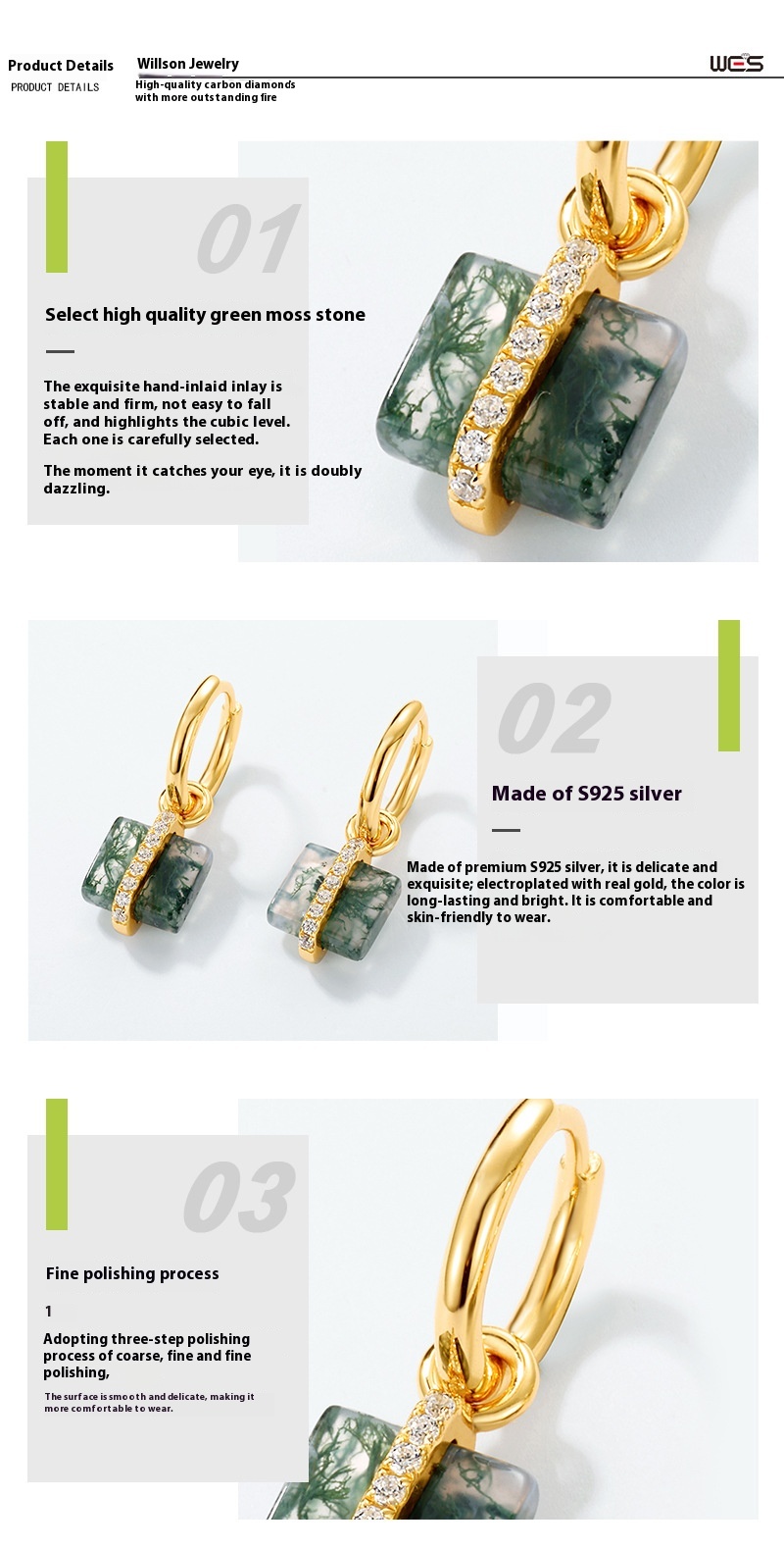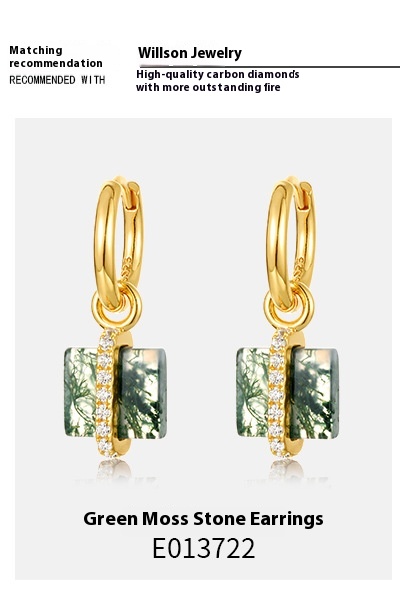 Square Natural Water Plants Agate Earrings S925 Silver Plated Green Moss Stone Earrings