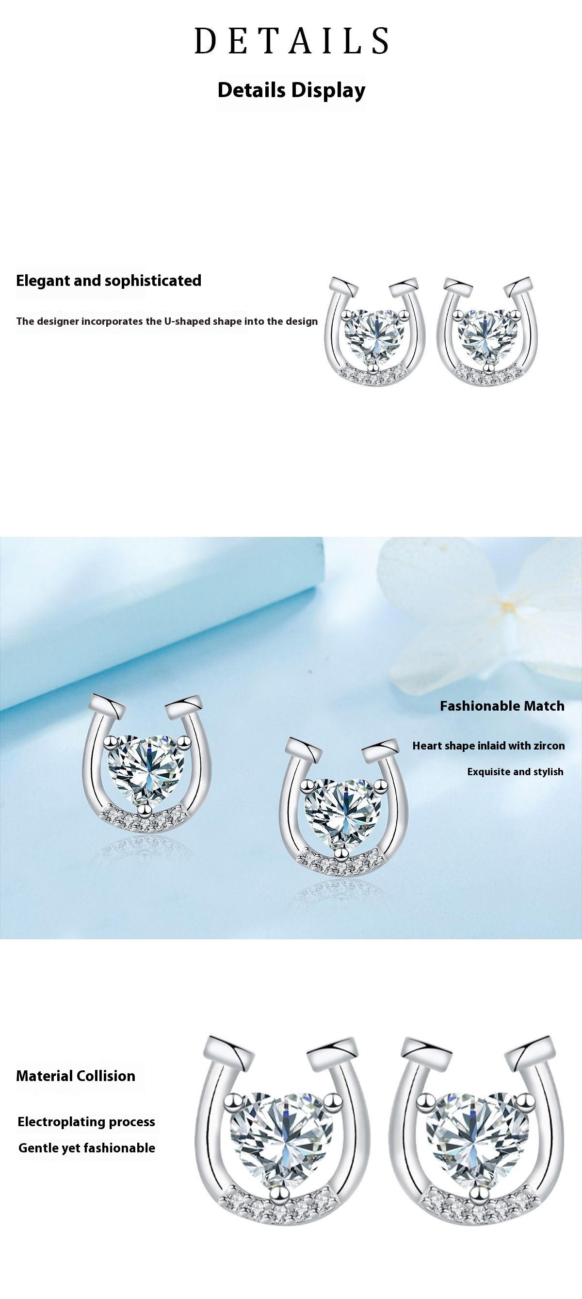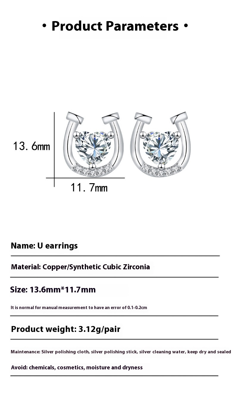 U-shaped Ear Studs Light Luxury Minority High-grade